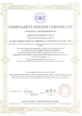 公司證書(shū)公司通過(guò)了ISO9001:2015、HACCP認(rèn)證和FSSC22000等質(zhì)量安全管理體系認(rèn)證。